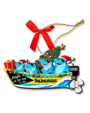 ORNAMENT- BAHAMAS BOAT ORNAMENT WITH DOLPHINS