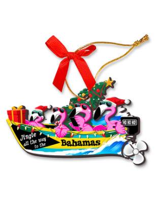ORNAMENT – BAHAMAS BOAT ORNAMENT WITH FLAMINGOS