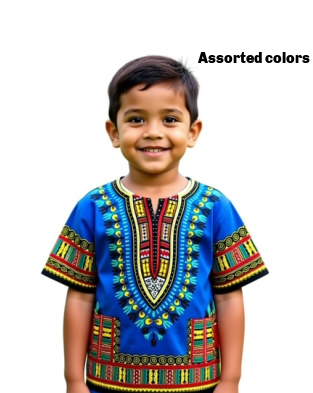 BOYS COTTON DASHIKI SHIRT IN ROYAL BLUE, YELLOW, ORANGE, GREEN, RED