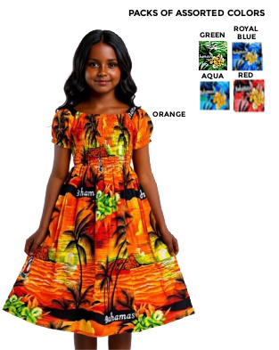 GIRL’S BAHAMA PRINT OFF THE SHOULDER DRESS