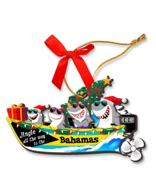 ORNAMENT – BAHAMAS BOAT ORNAMENT WITH SHARKS